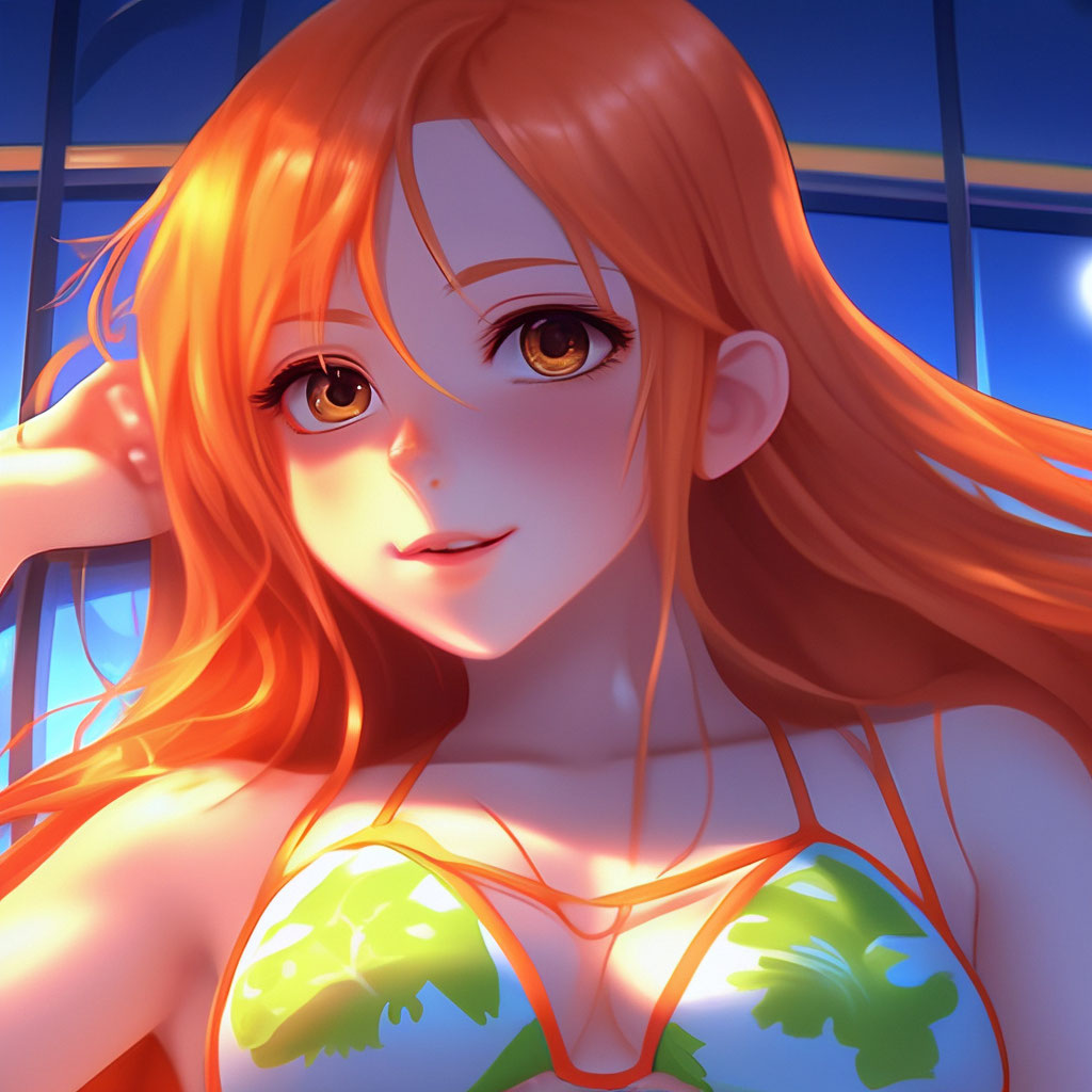 "Anime femboy 18+ girl in a loose mini bikini with a slit in the center, ." - im