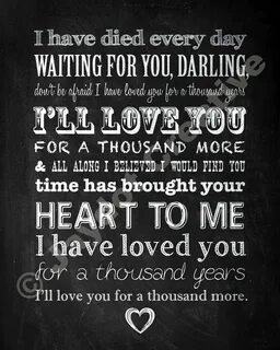 CHRISTINA PERRI "A Thousand Years" PRINTABLE Lyrics Artwork Chalkboard Style (Wi